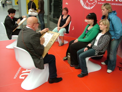 Vor Ihren Augen entstehen blitzschnell und in wenigen Minuten freundliche Karikaturen oder ausdruckstarke Portraits. Ihre Gäste haben